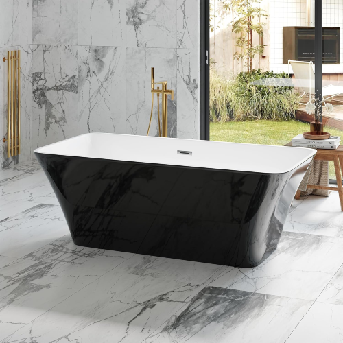 Transform your bathroom into a luxurious retreat with our stunning 59-inch Freestanding Black and White Acrylic Soaking Tub. This exquisite bathtub combines modern elegance with exceptional comfort, featuring a sleek black exterior that beautifully contrasts with the pristine white interior. Crafted from high-quality acrylic, it offers superior durability and insulation, ensuring a warm and relaxing soak every time. The spacious design allows for deep soaking, providing ample room to unwind and escape the stresses of the day. Its freestanding configuration adds a touch of sophistication to any bathroom layout, making it a striking centerpiece. Easy to install and maintain, this soaking tub is not only a stylish addition but also a practical choice for enhancing your bathing experience. Indulge in the ultimate relaxation and elevate your home spa with this exquisite soaking tub.